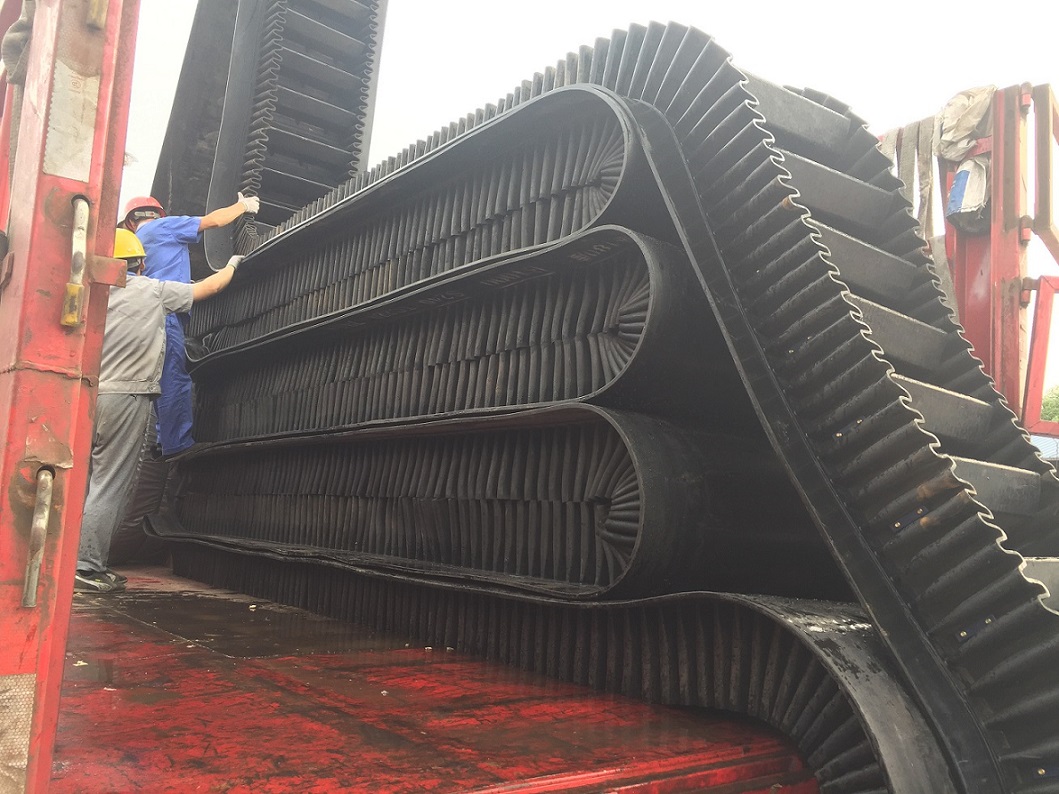 我公司生產(chǎn)的大傾角輸送帶,擋邊、橫隔板與基帶的粘接采用二次硫化,低溫熱硫化粘接,粘接強度高,粘接牢固、平整,不掉板、不脫落,不會因物料溫度過高導(dǎo)致裙邊與隔板脫落現(xiàn)象。