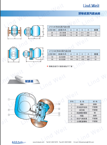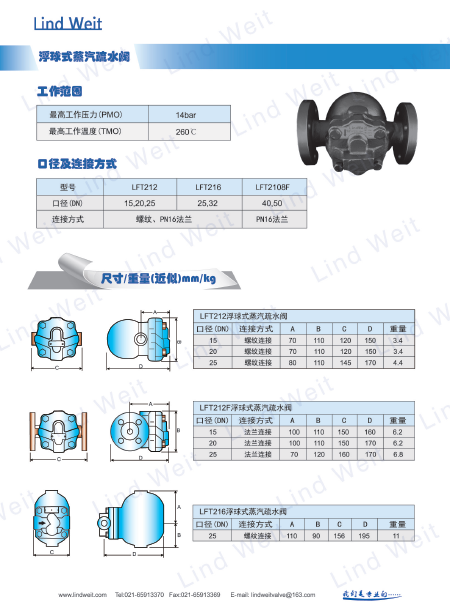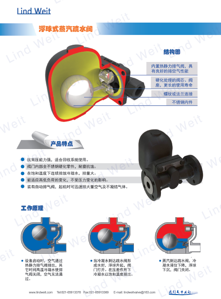 林德偉特工廠直銷lft浮球式蒸汽疏水閥的工作原理:
