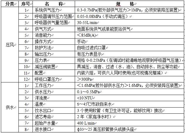 zyj(a)壓風供水一體自救裝置參數(shù):