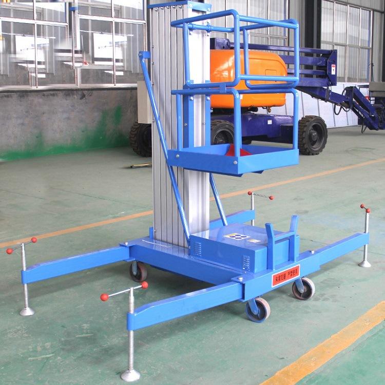 鋁合金式升降機(jī)為小型升降平臺(tái),適合1-2人登高作業(yè);