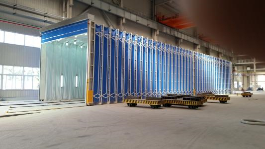 伸縮式噴漆房整體為框架傳動結(jié)構(gòu),每組框架間均有阻燃pvc布密封連接,安 裝快捷、外形美觀,結(jié)構(gòu)精巧,使用方便,制造成本低,節(jié)約投資!