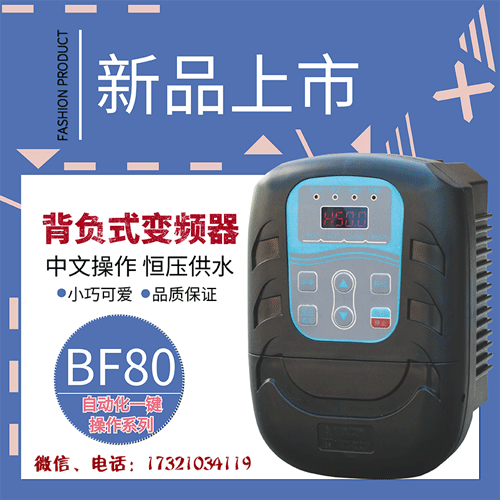bf80恒壓供水背負(fù)式自動化一鍵操作型變頻器為我公司的自動化一鍵操作型系列產(chǎn)品,中文操作,簡易供水參數(shù)設(shè)置。