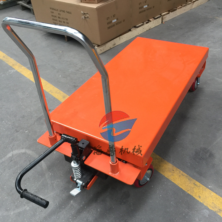 手動液壓升降平臺車可使操作者輕松快捷地裝載或卸載搬運箱內(nèi)的零件,無需操作者起升、彎腰、或伸手夠,只需通過一個腳踏的液壓缸起升作業(yè)臺面,方便輕巧的拿取貨物。