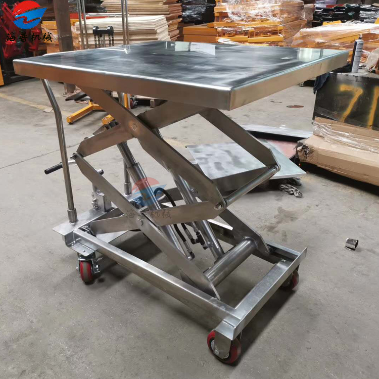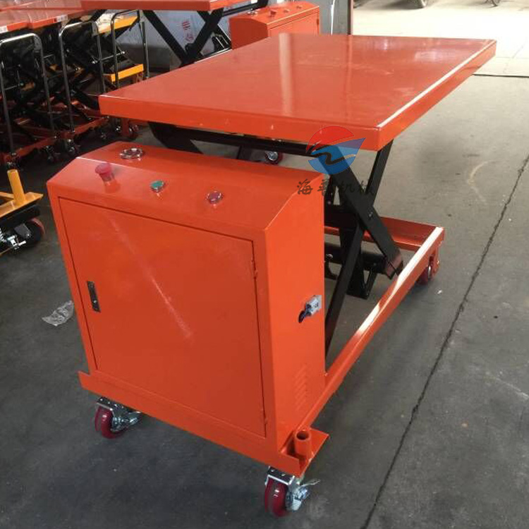 平臺下降控制為旋扭或扳手控制,額定裝載量分別有300 kg,350kg,500kg,800kg,1000kg五種,最高升高度有880、1300、1400、1500mm等,踏動塌腳桿操縱油泵,使工作臺面平穩(wěn)上升。操縱控制旋鈕或向上提升扳手,使工作臺面平穩(wěn)下降, 車架底部配有萬向輪,可向任意方向旋轉(zhuǎn),操作靈活簡便。