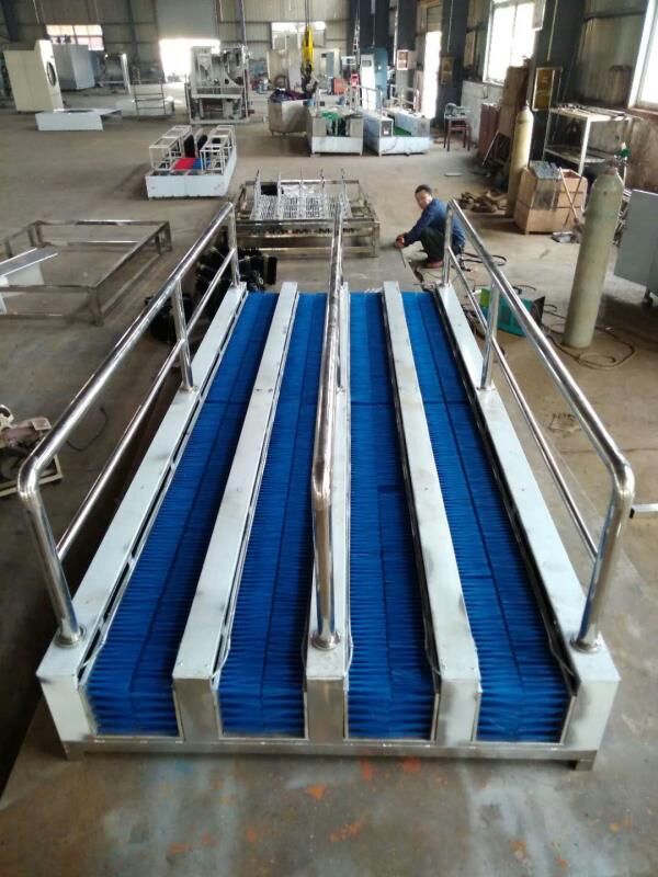 通道式清洗工作平臺,實現(xiàn)了人員無需停留,清洗刷選用進口耐磨尼龍絲材料制成。