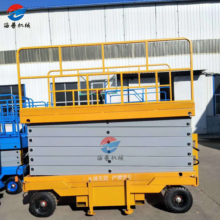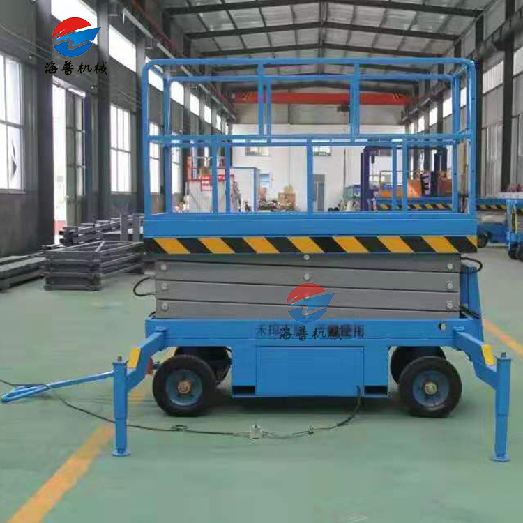 四輪移動式升降機: 該機系列平臺為人工移動式,有四個輪子作為移動,簡便且平穩(wěn)。平臺各降動力為二相,三相或直流24v,36v電源,也可改為些油機作動力,控制方式有手動控制和電動控制,另備有手壓泵和手動下降裝置,在停電時仍可正常使用