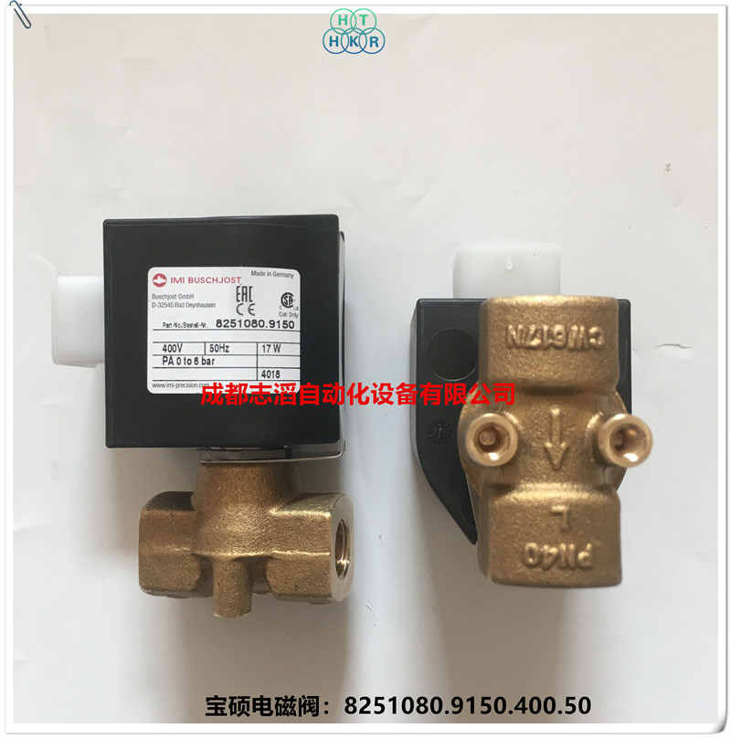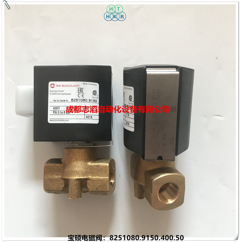 8251080.9150.400.50德國寶碩imi buschjost黃銅電磁閥技術參數:接口尺寸g1/4、通徑位5mm、kv值為0.5立方米/h、工作壓力0-6bar、閥體重量0.57kg、配寶碩普通線圈9150、電壓為400v交流、50赫茲!產地為德國!