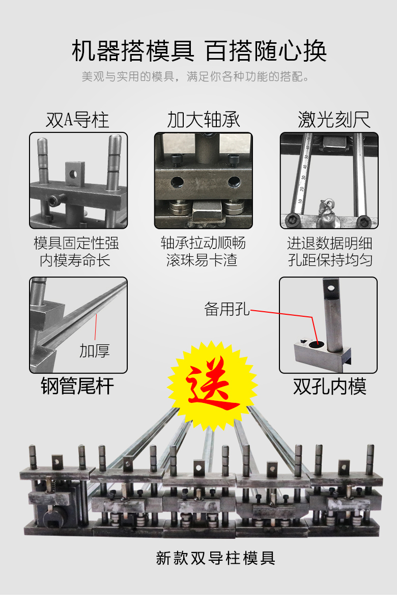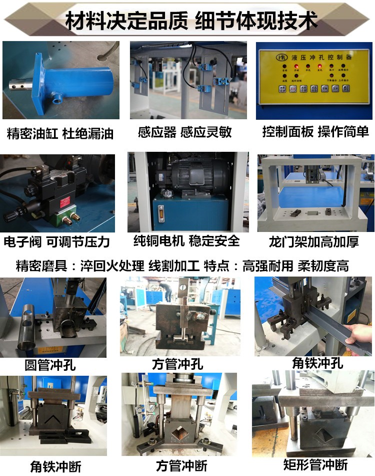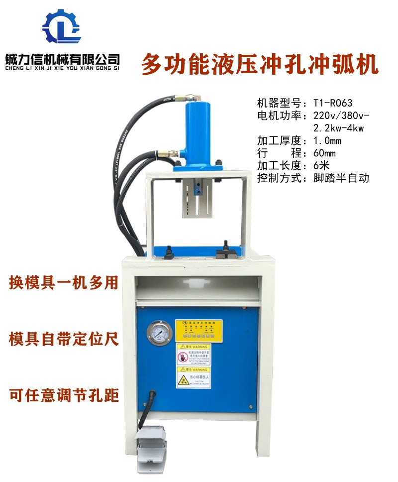 液壓高速防盜網(wǎng)沖孔機(jī)生產(chǎn)效率高,可沖樓梯扶手圓弧、圓管、欄桿、方管等各類(lèi)五金加工沖孔,快速調(diào)節(jié)行程根據(jù)不同的管材調(diào)節(jié)可半孔/全孔切換,設(shè)計(jì)獨(dú)特?zé)o需專業(yè)人員安 裝模具,調(diào)試模具簡(jiǎn)單、裝卸快速,機(jī)械可定做多個(gè)工位。