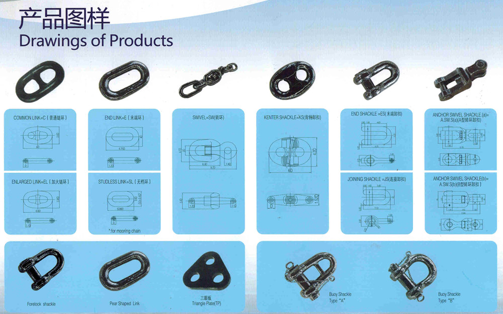 大家都知道,錨鏈?zhǔn)且枣湱h(huán)的組成的鏈節(jié)為單元的。電焊錨鏈的大小以鏈節(jié)中的普通鏈環(huán)的圓鋼斷面直徑表示,鏈節(jié)與鏈節(jié)之間用卸扣或連接環(huán)連接。連環(huán)分為無擋和有擋兩種,錨鏈相應(yīng)的分成有擋錨鏈和無擋錨鏈兩大類。有擋錨鏈的鏈節(jié)與鏈節(jié)之間用肯特卸扣連接,無擋錨鏈以連接卸扣連接。有擋錨鏈和無擋錨鏈的區(qū)別在于,有擋鏈環(huán)的抗拉強(qiáng)度較大,受力時(shí)變形較小,堆放時(shí)不易糾纏能較好的通過錨機(jī)鏈輪。重錨多采用有擋錨鏈。