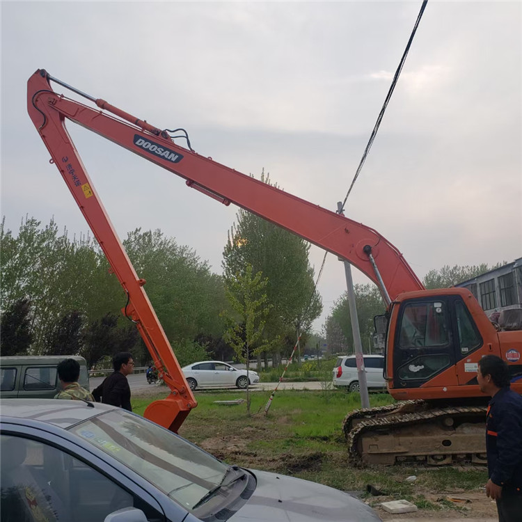 挖掘機(jī)加長臂有兩段式挖掘機(jī)加長臂和三段式挖掘機(jī)加長臂,兩段式挖掘機(jī)加長臂主要適用于土石方基礎(chǔ)和深塹挖掘作業(yè),河道清淤;三段式挖掘機(jī)加長臂主要適用于高層建筑的拆卸等工程。根據(jù)杠桿原理和力學(xué)原理,挖掘機(jī)加長臂的受力比原來減少,應(yīng)該盡量不要去重作業(yè)的場合施工。