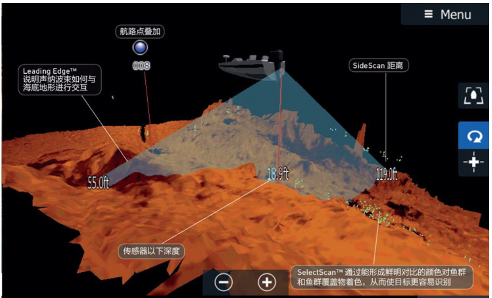 7.具有側(cè)掃下掃加聲吶探測功能,3d成像,結(jié)果更直觀。