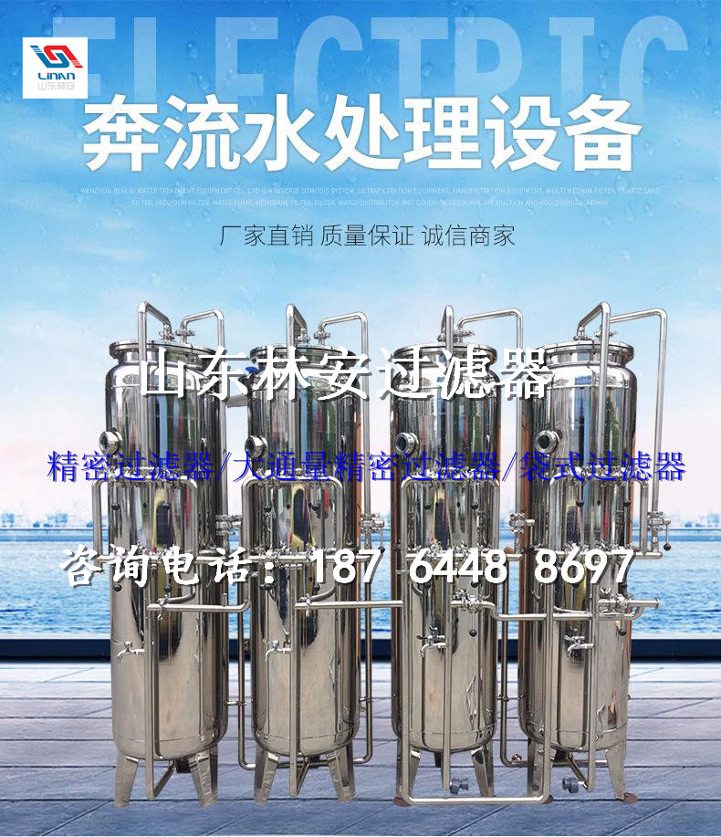 大 通量過濾器由優(yōu)質(zhì)不銹鋼304或316l制作而成,是一款安 裝在管路上能濾除流體中的各種固體顆粒污染物的過濾設(shè)備,去除濁度1度以上的細(xì)小微粒,來滿足后續(xù)工序?qū)M(jìn)水的要求;有時也設(shè)置在整個水處理系統(tǒng)的末端,防止細(xì)小微粒進(jìn)入成品水的精密過濾設(shè)備。