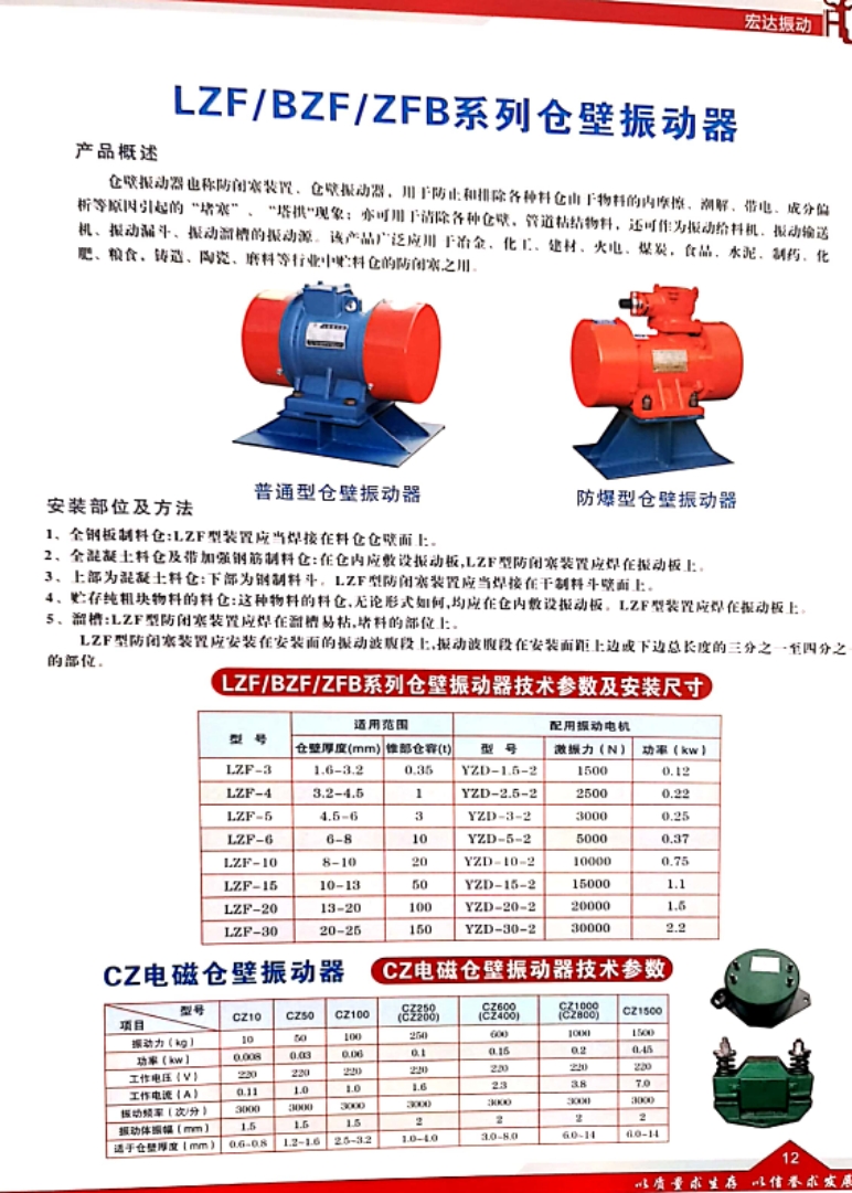 cz型倉壁振動器是靠高頻振動和沖擊力,有效地消除物料由于內(nèi)摩擦、潮解、帶電、成分偏析等原因而引起的堵塞、搭拱現(xiàn)象,使物料從料倉口順利排出,保證穩(wěn)定地供料所必需的設(shè)備。