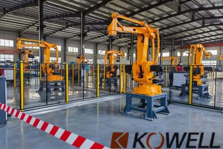 2、碼垛搬運(yùn)機(jī)器人占地面積。河欣诳蛻艄S內(nèi)生產(chǎn)線的布局,可以留出較大的倉(cāng)庫(kù)面積。碼垛和搬運(yùn)機(jī)器人可以安 裝在狹窄的空間并使用。