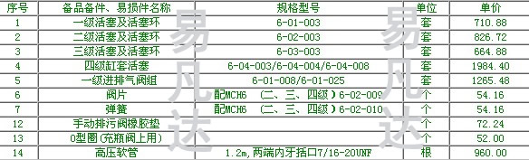 mch6備品備件、易損件清單 以現(xiàn)行價格表為準(zhǔn),只做參考!