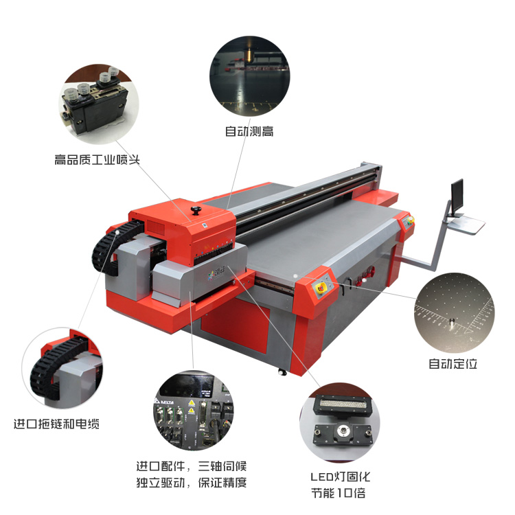 亞克力打印機(jī):uv平板噴繪機(jī)可以在軟、硬質(zhì)材料表面實(shí)現(xiàn)無版、非接觸、即時的數(shù)字化印刷,替代傳統(tǒng)的手工繪制、絲網(wǎng)印刷、熱轉(zhuǎn)印等工藝、給用戶帶來個性化、小批量、多品種、多色彩、迅速交貨的印刷新體驗(yàn)。uv平板噴繪機(jī)應(yīng)用:建筑材料裝飾:可以將圖片噴繪在玻璃、瓷磚、地板、天花板、有機(jī)玻璃板等板材介質(zhì)上,能使建筑作品室內(nèi)室外充分彰顯個人特性、映襯文化特征;廣告 、酒瓶行業(yè):可以將風(fēng)景寫真、宣傳資料等噴繪于玻璃、pvc pp pe 、紡織品、有機(jī)玻璃板、亞克力板、密度板、雪佛 板或金屬表面,應(yīng)用于廣告 會展服務(wù)、pop廣告 宣傳牌、指示牌燈箱廣告 、皮革印花等領(lǐng)域;藝術(shù)裝飾領(lǐng)域:藝術(shù)玻璃噴繪、裝飾陶瓷、壁畫、天花板、工藝品等彩印制做。如果您是做彩印的話就一定要多多了解我們的設(shè)備了--先知就是機(jī)會。