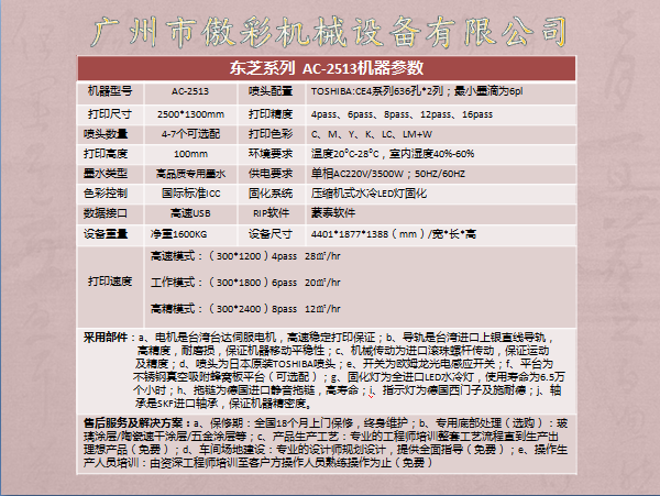廣州傲彩機(jī)械設(shè)備有限公司亞克力uv平板打印機(jī)售后承諾: