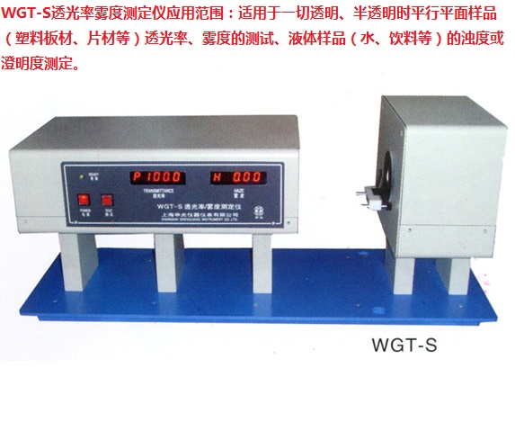 wgt-s透光率霧度測定儀適用于一切透明、半透明時平行平面樣品(塑料板材、片材等)透光率、霧度的測試、液體樣品(水、飲料等)的濁度或澄明度測定。