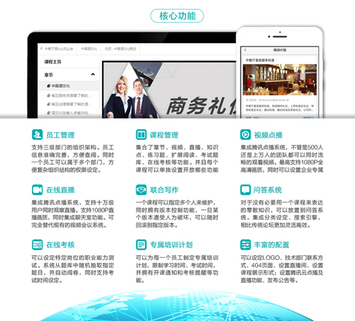 新員工教學(xué)軟件網(wǎng)埔e-training是青島同游網(wǎng)絡(luò)技術(shù)有限公司根據(jù)自身多年的教育平臺開發(fā)經(jīng)驗以及深入調(diào)研企業(yè)培訓(xùn)需求后自主研發(fā)的一套針對企業(yè)內(nèi)部培訓(xùn)管理的專用軟件,可以讓企業(yè)將自身知識及培訓(xùn)資源進行整合,形成線上課程(圖文、視頻、直播等形式),員工通過手機或電腦即可線上學(xué)習(xí)并完成考核。