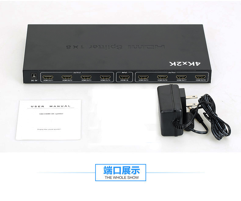這款1 x8 hdmi分配器可以把一個(gè)高清信號(hào)源連接到八個(gè)高清顯示終端。它可以很容易地將一個(gè)高清信號(hào)源所產(chǎn)生的高清信號(hào)分配到八臺(tái)支持高清信號(hào)的顯示器或者投影機(jī)上。另外,把它接在一根hdmi線的信號(hào)輸出端時(shí),可對(duì)hdmi信號(hào)進(jìn)行放大。
