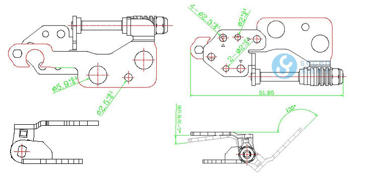 3.產品預壓角-7±2°,限位角度135°±3°,