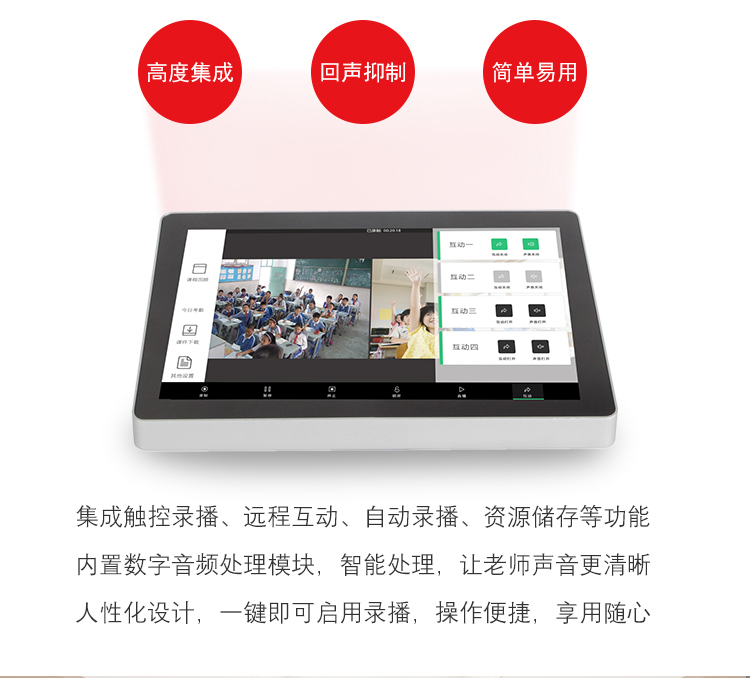 2.觸摸屏采用電容式觸控技術(shù)耐磨損、使用壽命長。只需輕輕觸摸,即可響應(yīng),操作體驗(yàn)佳,觸摸定位精度1.5mm,響應(yīng)時(shí)間<10ms。錄播所有操作均可通過點(diǎn)觸實(shí)現(xiàn);
