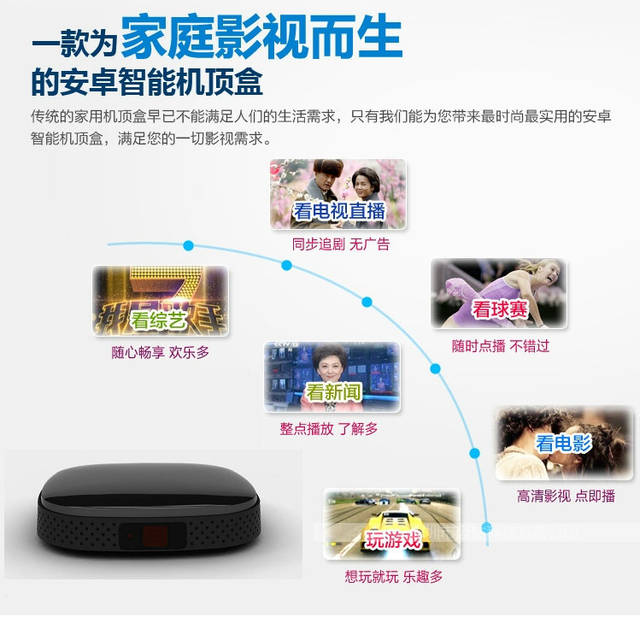 該產(chǎn)品支持安卓4.1/4.2/4.4智能操作系統(tǒng)(支持后續(xù)升級),聊天通信、游戲、交通資訊、天氣預(yù)報、教學(xué)課程、k歌等海量應(yīng)用程序免費(fèi)下載安裝,讓生活更加豐富多彩。家里的電視不是智能電視?沒關(guān)系,寒楓科技安卓高清網(wǎng)絡(luò)高清播放機(jī)為你輕松解決。