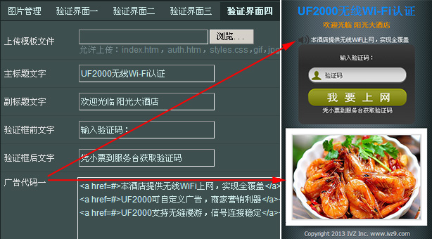 艾威uf2000無(wú)線(xiàn)hotspot認(rèn)證系統(tǒng)ac通過(guò)瀏覽器進(jìn)行管理,有四套認(rèn)證頁(yè)面可供選擇,也可自行上傳修改模板,廣告 信息隨時(shí)修改,操作簡(jiǎn)單易用。