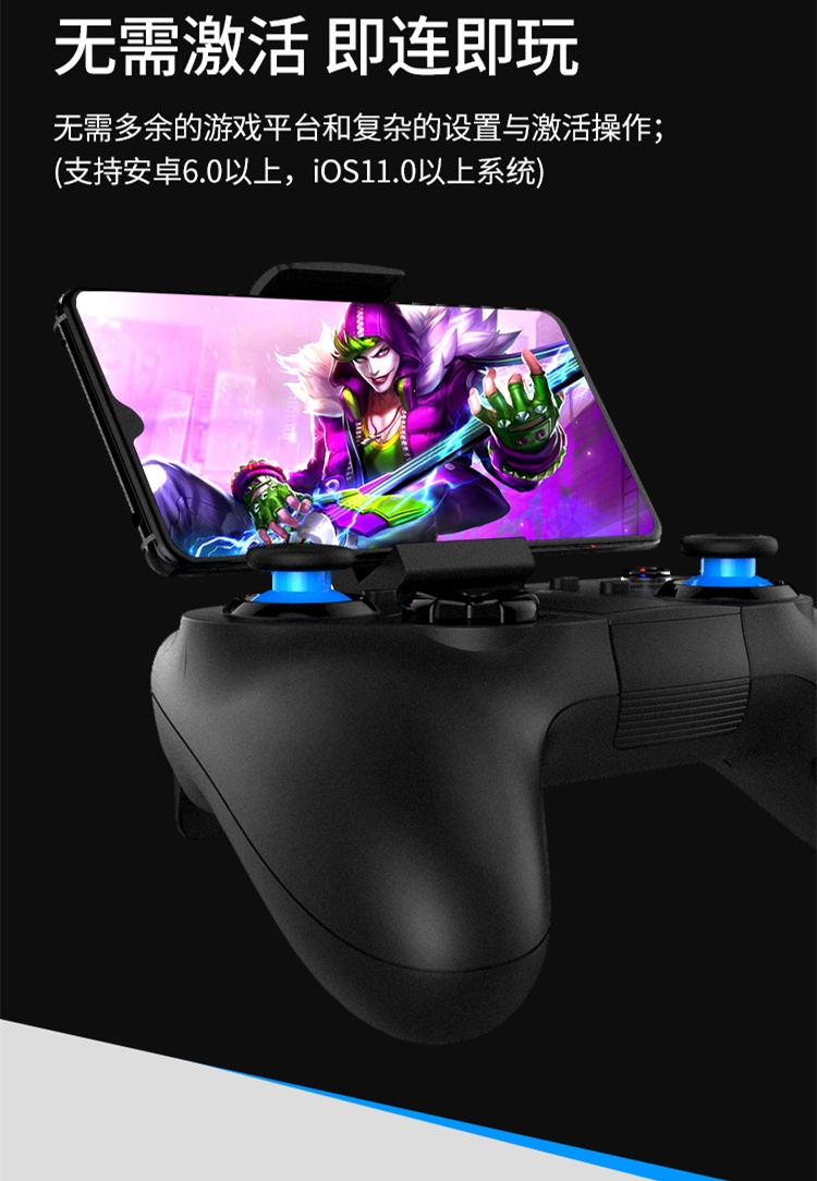 2.藍(lán)牙游戲手柄適用于android/ios手機(jī)平板/智能電視系統(tǒng)上無線連接時,進(jìn)行游戲操作時使用;同時支持p3主機(jī)、switch主機(jī)、pc電腦有線連接進(jìn)行游戲操作時使用。