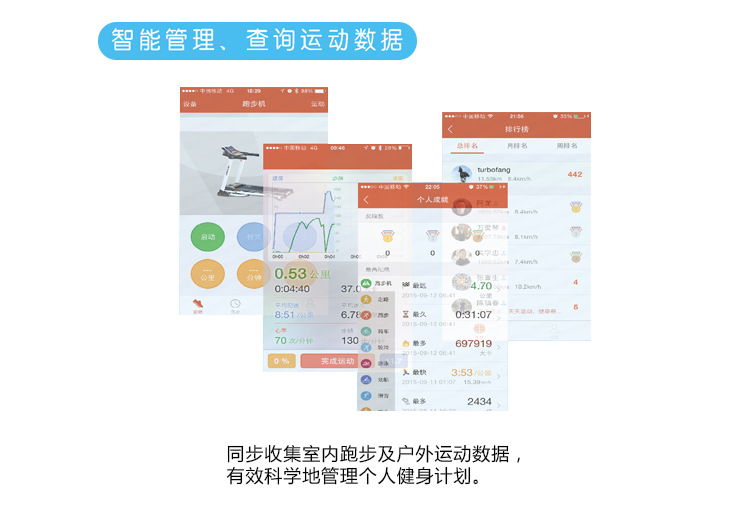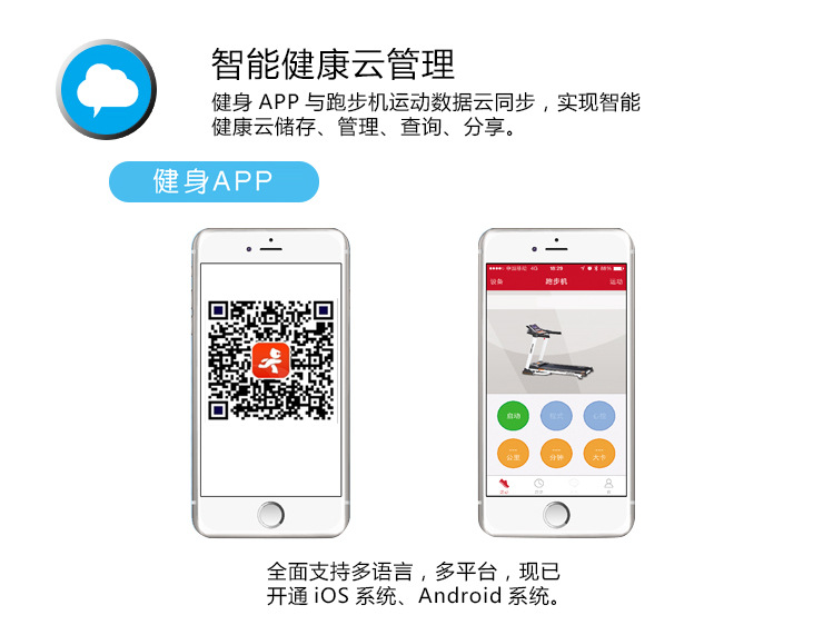 智能健康云管理:健身app與跑步機(jī)運(yùn)動數(shù)據(jù)云同步,實(shí)現(xiàn)智能健康云儲存、管理、查詢、分享。