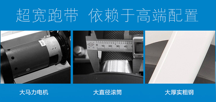 超寬跑帶,依賴于高端配置:大馬力電機(jī)、大直徑滾筒、大厚實(shí)粗鋼