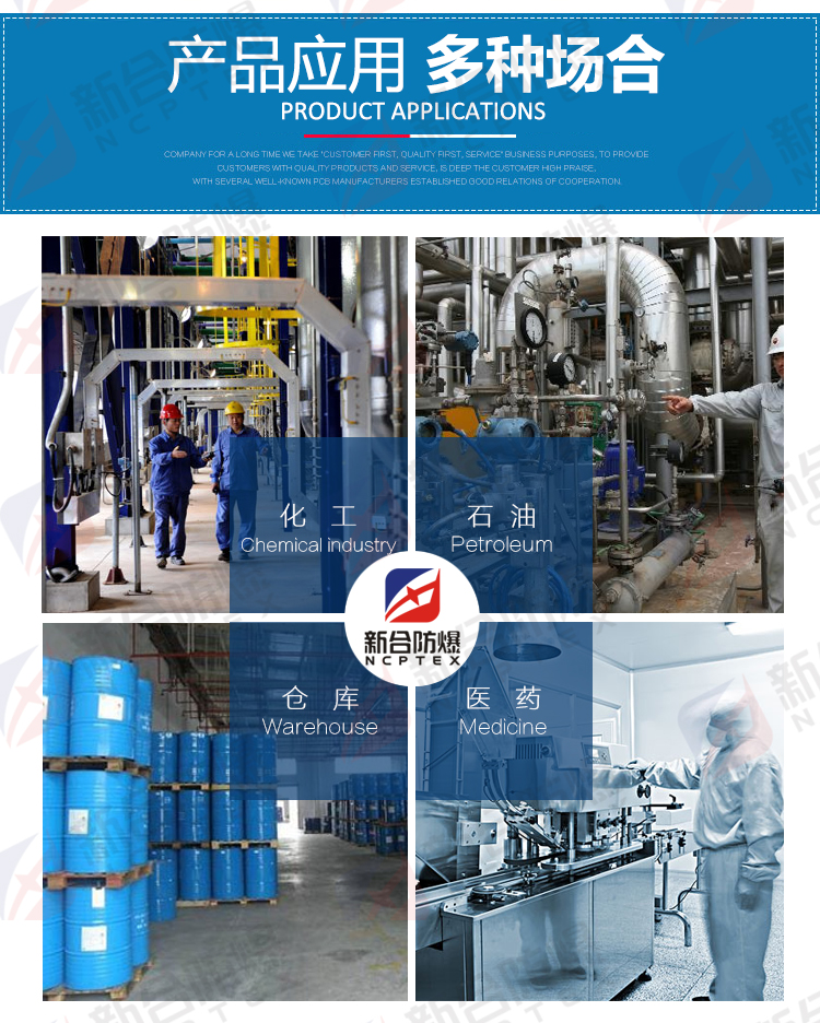 石油、化工、軍隊(duì)、油庫、電廠、精密車間、分析室、調(diào)漆房、危險(xiǎn)品倉庫、海洋石油平臺(tái),氫氣等易燃、易爆環(huán)境的制冷和制熱,新合防爆空調(diào)的外觀和普通空調(diào)有區(qū)別,但用法與普通空調(diào)一樣。