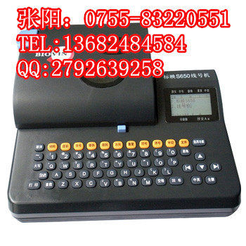 標(biāo)映套管印字機(jī)s650的亮點(diǎn)在于,打印熱縮管的效果的非常好,就是進(jìn)口的線號(hào)機(jī)也不及其打印的效果完美!標(biāo)映線號(hào)機(jī)s650使用的色帶型號(hào)為rs-80b黑色的,色帶也有其他顏色比如白色等,但是這里要注意一點(diǎn),在打印除黑色色帶以外的彩色色帶,我們需要找到彩色打印這個(gè)功能鍵,然后選擇彩色打印,不然會(huì)出現(xiàn)打印出錯(cuò),一點(diǎn)要記住這一點(diǎn)!標(biāo)映s650線號(hào)機(jī)白色背光lcd顯示,全中文界面,支持漢語(yǔ)拼音輸入,2行內(nèi)容顯示,每行可顯示14個(gè)英文字母或7個(gè)漢字或符號(hào);打印精度為300dpi,采用熱轉(zhuǎn)印方式;自動(dòng)半切或不半切,并可調(diào)節(jié)半切深度;高速打印,每秒25mm的打印速度;半切打印狀態(tài)下每分鐘可打印35段20mm長(zhǎng)的套管,40段20mm長(zhǎng)的貼紙;超大儲(chǔ)存,擁有1g儲(chǔ)存空間,可同時(shí)儲(chǔ)存128個(gè)文件;簡(jiǎn)易62鍵中文計(jì)算機(jī)鍵盤(pán),操作簡(jiǎn)單;高性能進(jìn)口色帶,使字跡清晰,長(zhǎng)久不褪色;持久耐用,打印頭加耐磨層,延長(zhǎng)壽命;高性?xún)r(jià)比:整機(jī)質(zhì)優(yōu)價(jià)廉,耗材批量經(jīng)濟(jì),降低用戶(hù)總成本。配備手提包,方便攜帶,適合各種場(chǎng)合使用。功能強(qiáng)大,價(jià)格優(yōu)惠,就是它,標(biāo)映s650線號(hào)印字機(jī)!