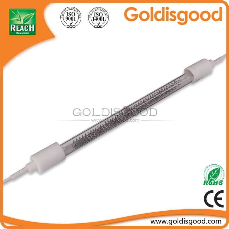 2、更加高密度的加熱功率輸出:金是好公司紅外加熱管的高透過率透明石英材料和特殊的加熱絲制作工藝,使得單支紅外加熱管的輸出功率可以從數(shù)十瓦到數(shù)千瓦;雙孔加熱管(孿管)更可將相同面積內(nèi)的加熱功率提高一倍。金是好公司的紅外加熱管可以密集排布,使得最大功率輸出密度達到200kw/m2(采用短波加熱管)和80 kw/m2(采用中波加熱管)。