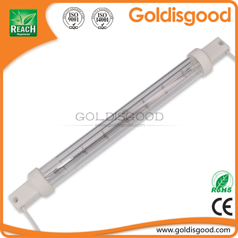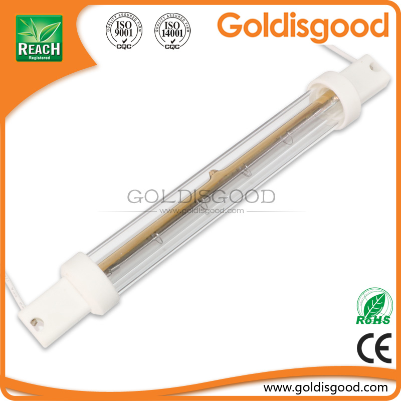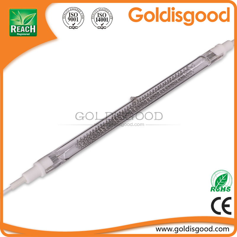 快中波加熱管的介紹: 快中波紅外輻射器是輻射光譜介于短波與標(biāo)準(zhǔn)中波之間的產(chǎn)品。但是與標(biāo)準(zhǔn)中波產(chǎn)品相比,快中波 輻射器不僅具有快速的反應(yīng)時(shí)間,更能大大提高單位面積內(nèi)的安 裝功率。 2:快中波加熱燈管的技術(shù)參數(shù): 技術(shù)參數(shù) 快中波孿管輻射器 功率 80 w/cm 最大加熱長(zhǎng)度 6400/ 2400 mm 截面積 34 x 14 / 23 x 11 mm 燈絲溫度 1400 °c - 1800 °c 波長(zhǎng) > 1.4 μm 最大單位面積功率 150 kw /m2 反應(yīng)時(shí)間 1 - 2 s 3:快中波加熱燈管的可用行業(yè):涂裝烘道、壓花機(jī)械、油漆干燥等