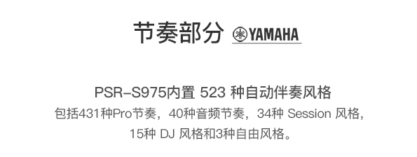 psr-s975是psr-s970的 psr,功能更多內存容量更大。 psr-s975將psr領域范圍內其他型號的所有功能與強大的性能功能(包括多功能效果,外部顯示功能和可編程聲樂和聲功能)結合在一起。規(guī)格:1002 mm x 48 mm x 437 mm 重量:11.6 kg