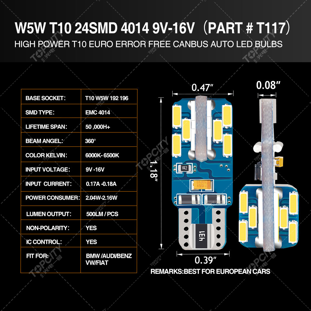 led t10 24smd led示寬燈,閱讀燈,儀表燈,
