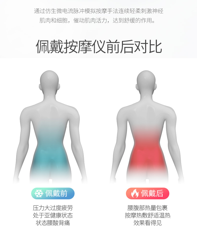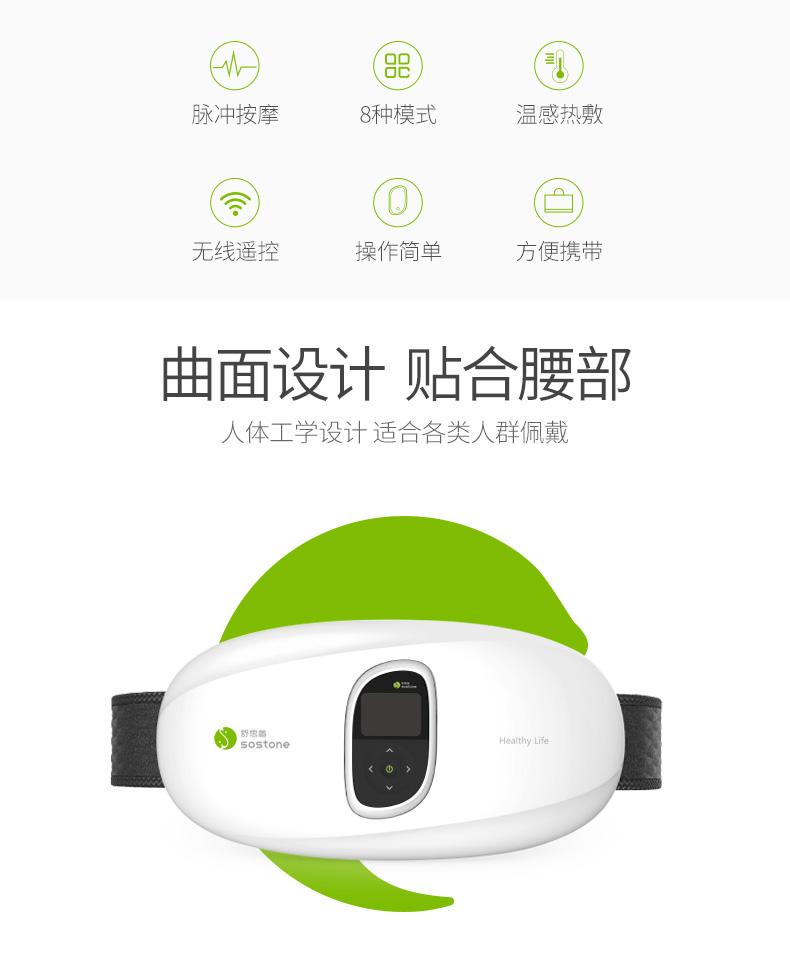 不做小腹婆 還能減腹助消化,這款產(chǎn)品根據(jù)人體工學(xué),采用腰腹兩用的新型設(shè)計(jì),把主機(jī)戴到后腰是腰椎按摩儀,而戴到腹部就搖身一變?yōu)楦共堪茨x,實(shí)用性很強(qiáng),F(xiàn)在腰椎不好的人一抓一大把,而大腹便便的人也不在少數(shù)。當(dāng)出現(xiàn)便秘、不消化、腹部贅肉的時(shí)候,就可以把它用在腹部,通過低頻電脈沖按摩腹部,就能促進(jìn)腸胃蠕動,防止腹部脂肪堆積。