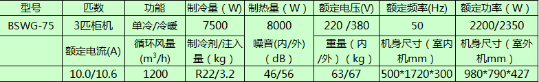 3p防爆空調(diào)柜式機(jī)bswg-75特點(diǎn):