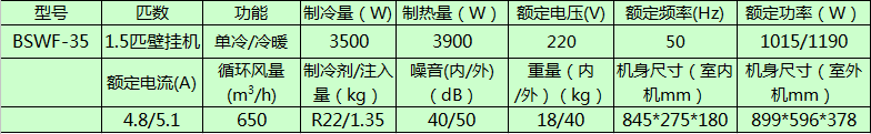 1.5p防爆空調(diào)掛式機bswf-35特點: