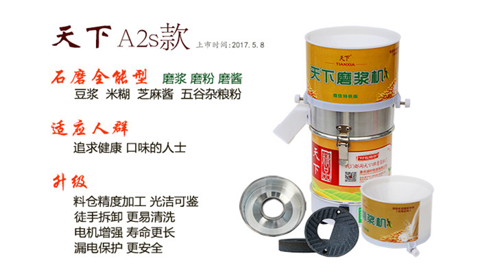 天下磨漿機20年專注電動石磨研發(fā),整機材料采用國際環(huán)保標準,通過了國家3c認證,并已獲得多項專利,不掉砂,綠色又環(huán)保,經(jīng)得起時間和市場的考驗。作為生產(chǎn)廠家的重慶涵村電器有限公司.