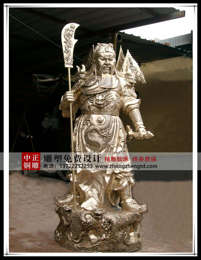 武圣銅關(guān)公,銅關(guān)公價格,承接銅關(guān)公, 關(guān)羽是三國著名將領(lǐng),位列蜀漢五虎上將之首。關(guān)羽死后頭葬在河南洛陽,身子葬在湖北當(dāng)陽。民間盛傳,關(guān)羽頭枕洛陽,身臥當(dāng)陽,魂歸山西。關(guān)羽的忠義和勇武的形象,備受人們愛戴,被民眾尊稱為關(guān)公、關(guān)老爺,后代帝王為了宣傳關(guān)羽的現(xiàn)象,多次褒封,最高的尊稱就是武帝。關(guān)羽與劉備、張飛是結(jié)義兄弟,關(guān)羽排行第二,故在在民間又俗稱為關(guān)二爺、關(guān)二哥,直至現(xiàn)當(dāng)代的某些社會群體與場合中,擺放上一尊銅關(guān)公像也是一件非常普遍的事情。