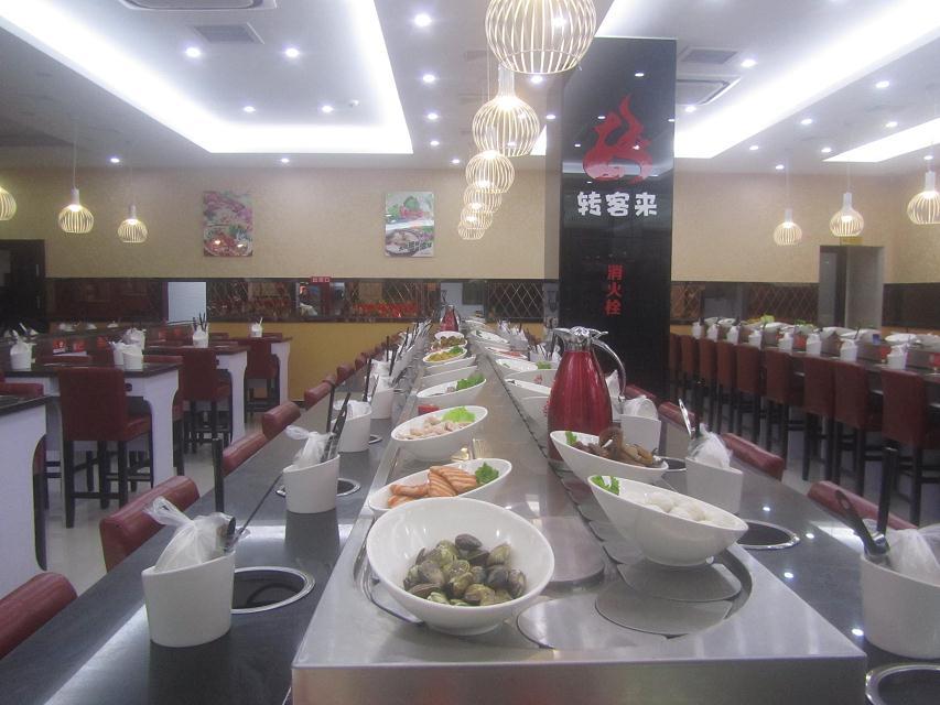 無需服務(wù)員送上;剞D(zhuǎn)火鍋設(shè)備結(jié)構(gòu):回轉(zhuǎn)火鍋設(shè)備的一般寬度為540mm,常規(guī)形狀一般有o型、l型、e型、t型,以及其他異型等,可以滿足不同客戶的各種不同需求。
