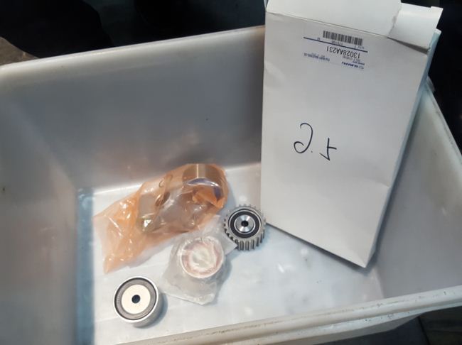 此次更換正時(shí)皮帶、惰輪、漲緊輪、水泵。
