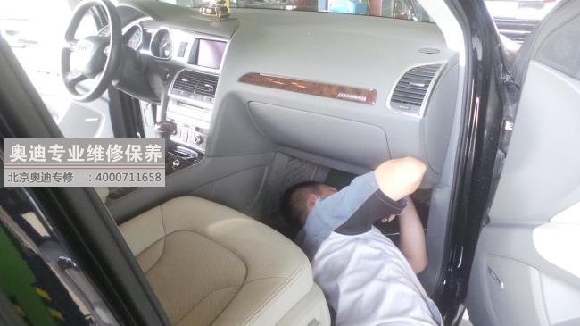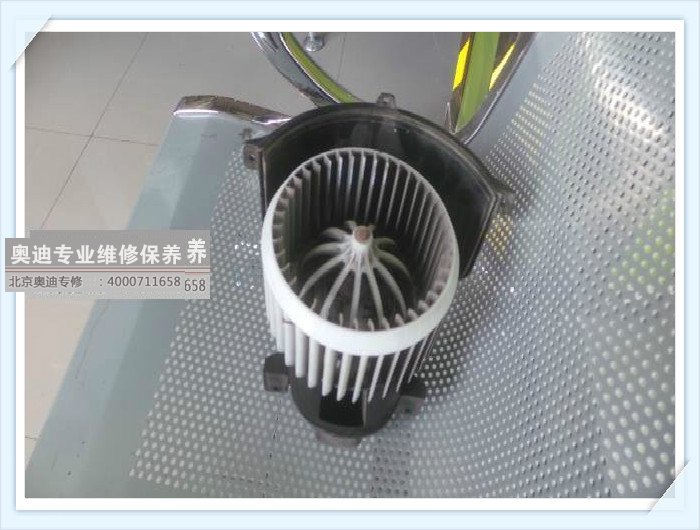 到店一臺(tái)奧迪q7車輛,車主反映啟動(dòng)空調(diào)不制冷,具體表現(xiàn)為出風(fēng)口無風(fēng)送出,根據(jù)車主的反映我們第一時(shí)間判斷為空調(diào)鼓風(fēng)機(jī)不工作造成。車輛進(jìn)入工位,我廠技術(shù)人員進(jìn)行故障排查,確定空調(diào)管路及空調(diào)泵均正常,唯一的毛病就出在空調(diào)風(fēng)機(jī)身上。