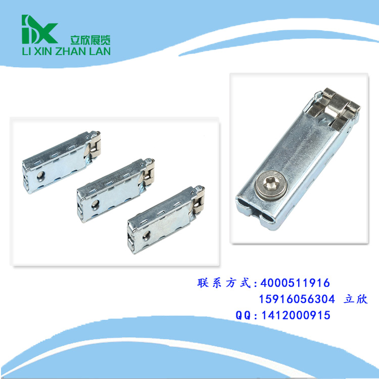 三卡鎖鎖件主要用于展覽場館,各類型材之間的連接搭建。它將兩個(gè)搭接方向不同、端面形狀不同或相同的鋁型材,通過插入型材槽口的卡爪的張開運(yùn)動實(shí)現(xiàn)相互連接。鎖件是由彈簧片.彈簧,偏心輪.上蓋.下蓋五部分組成,結(jié)構(gòu)合理.牢固性好,使用方便,尺寸符合行業(yè)標(biāo)準(zhǔn).彈簧片采用西德進(jìn)口高級彈簧鋼,模壓成行后,經(jīng)先進(jìn)的熱處理工藝加工而成,尺寸精確,無變形,具有較好的韌性高的強(qiáng)度和彈性極限,高的疲勞強(qiáng)度和極底的彈性模量.以p行輪替代了傳統(tǒng)的凸輪帶動彈簧片縱向運(yùn)動,避免了鎖過頭的現(xiàn)象,保證了鎖件的牢固性,彈簧片具有較大的張開度,確保鋁型材不損壞.三卡鎖特點(diǎn):拆裝組合方便,易裝易拆,便于運(yùn)輸,節(jié)省存儲空間,經(jīng)久耐用承受力150公斤。適用于展位,扁鋁連接,標(biāo)攤固定等