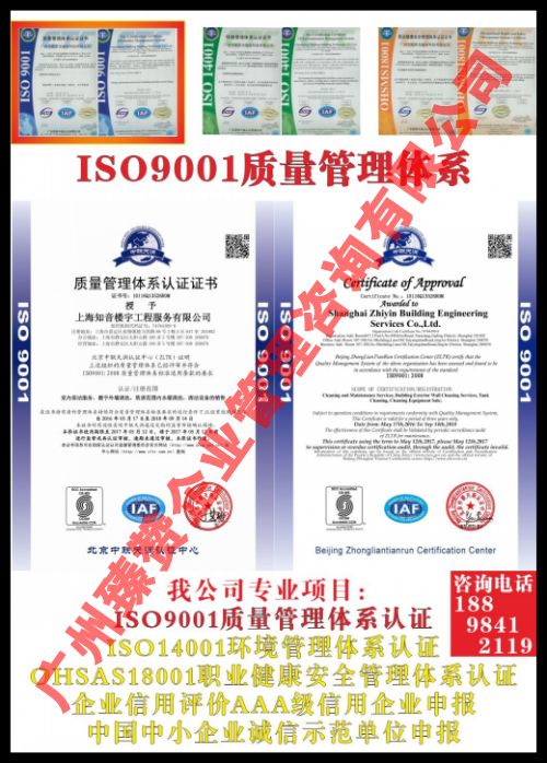 質(zhì)量認(rèn)證軌制被世界上越來越多的國家和地區(qū)接受,已成為國際慣例。一個企業(yè)不管在海內(nèi)仍是在國外,如要得到辦理iso9001_臻贊咨詢普遍認(rèn)可,取得iso9001的認(rèn)證證書將是突破壁壘的重要途徑,并將成為通向世界的有效護(hù)照,使您事半功倍。