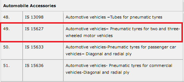 摩托車兩(三)輪車胎印度bis 認(rèn)證