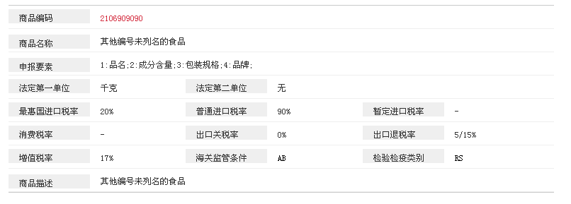 申報(bào)要素 :品名,成分含量,包裝規(guī)格,品牌