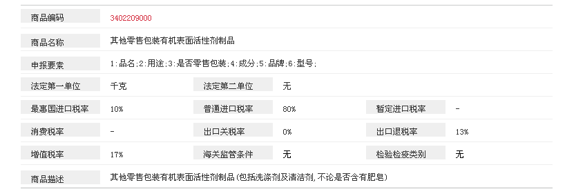 申報要素 :品名、用途、是否零售包裝、成分、品牌、型號